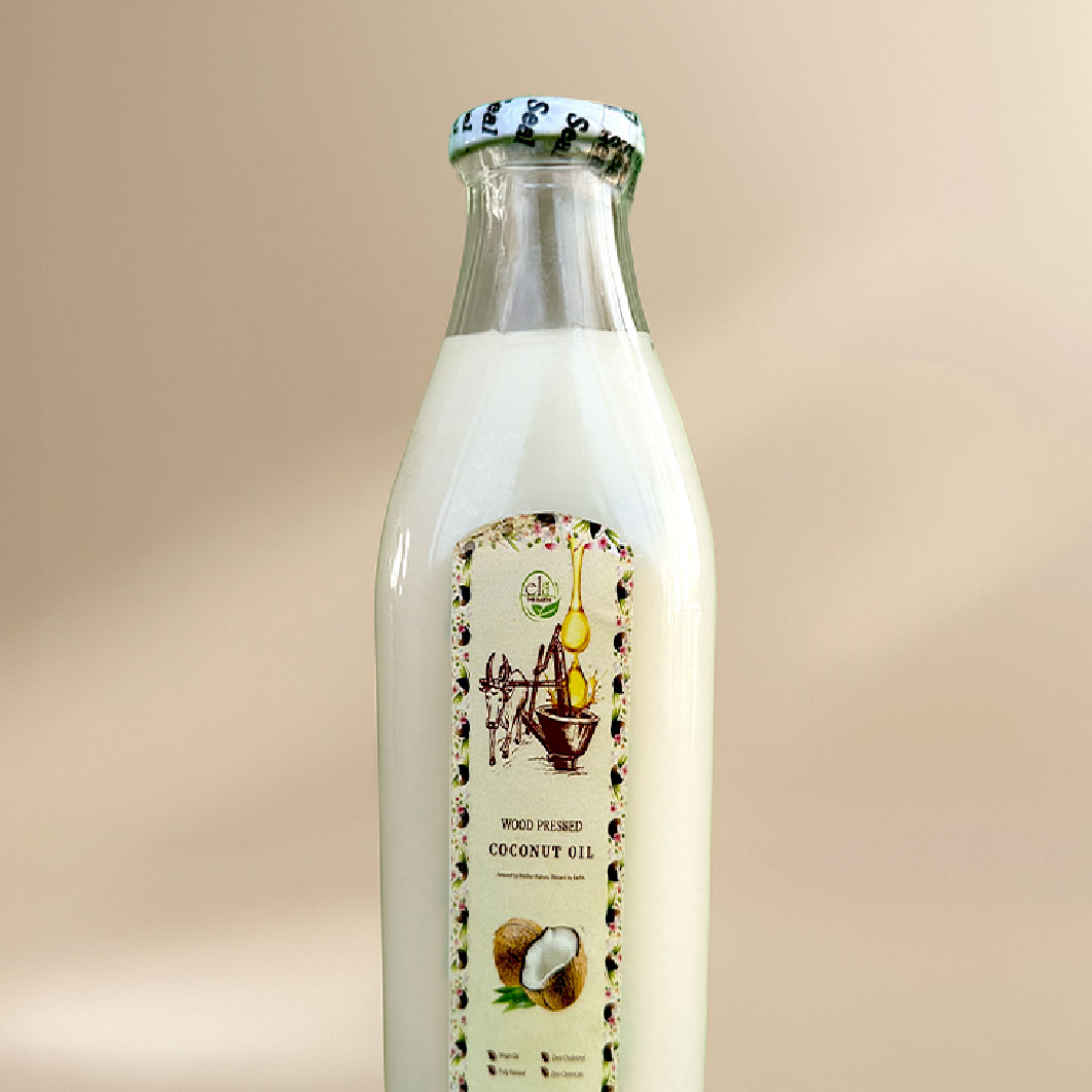 Pure wood-pressed Coconut Oil extracted using traditional cold-press methods for natural purity. Rich in healthy fats with a mild aroma and smooth, nourishing texture. Ideal for cooking, hair care, skincare, and daily wellness routines.